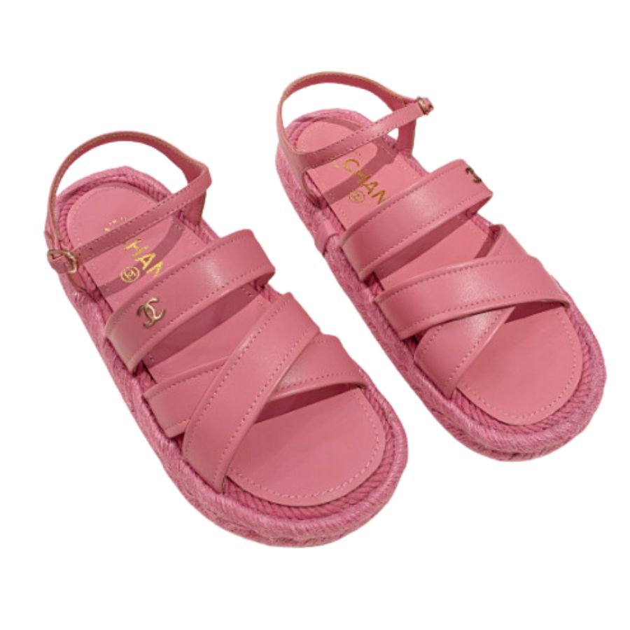 Ch**el Straw Weave Strap Thick Sole Crossbody Pink For Women