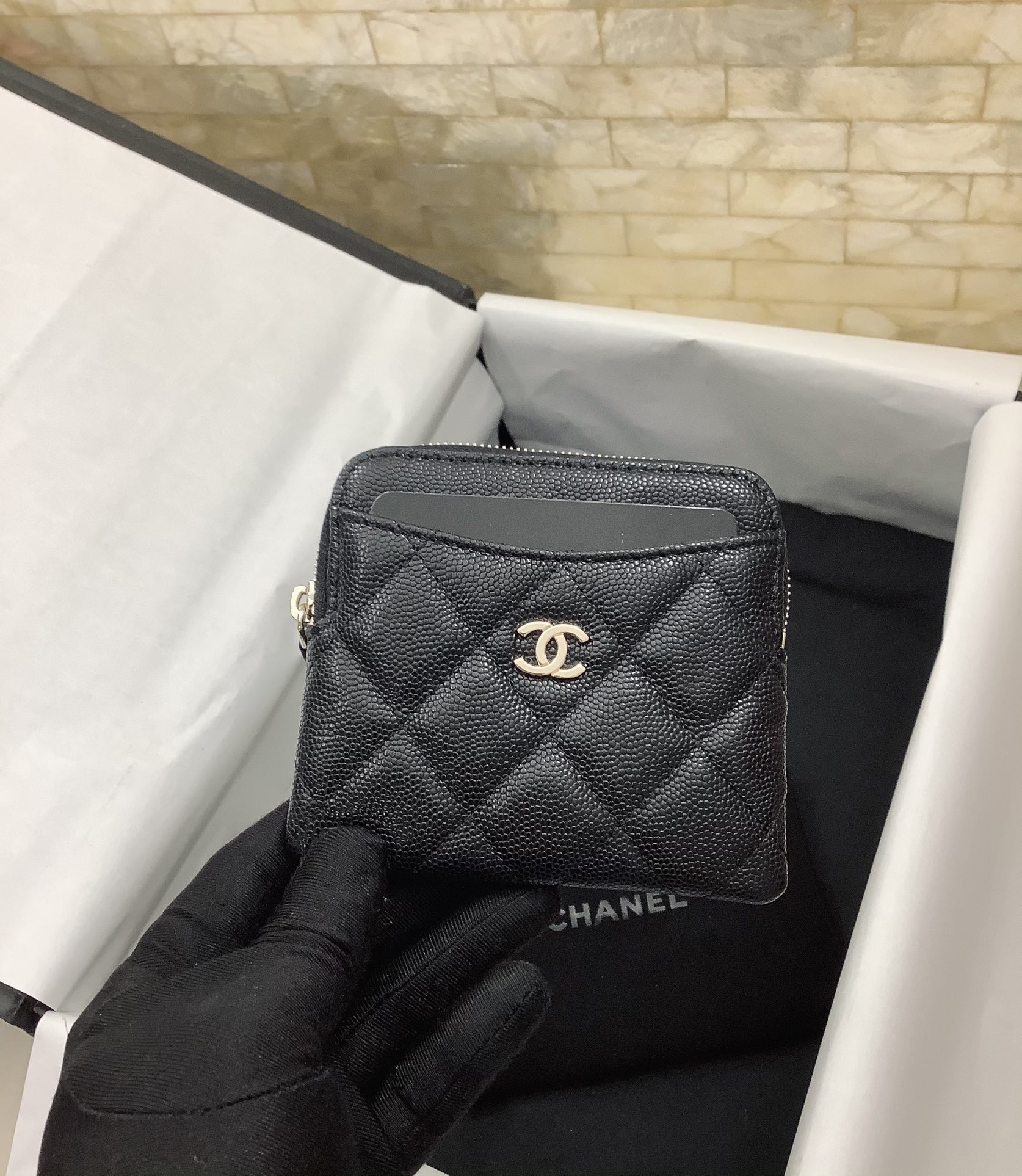 Ch**el CO-CO Classic Card Holder10.5cm/4.1in Silver Hardware For Women Black
