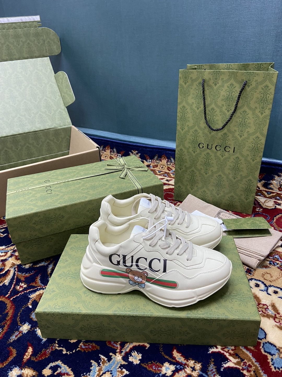 Gvc*1 Men’s Rhyton Sneaker With GG Apple White Ivory For Men 609343 DRW00 9522