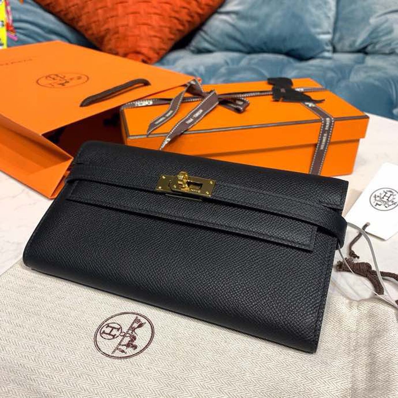 H**me5 Kelly Wallet To Go Woc Black With Gold Toned Hardware Bag For Women 8.2in/21cm