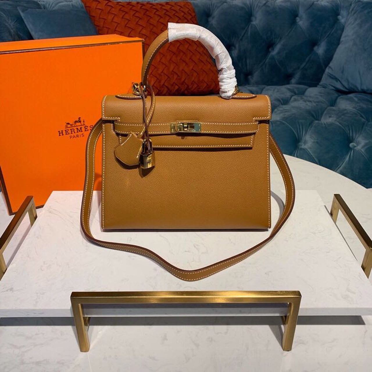 H**me5 Kelly 28 Greige Bag With Gold Toned Harware For Women, Women’s Handbags, Shoulder Bags 11in/28cm