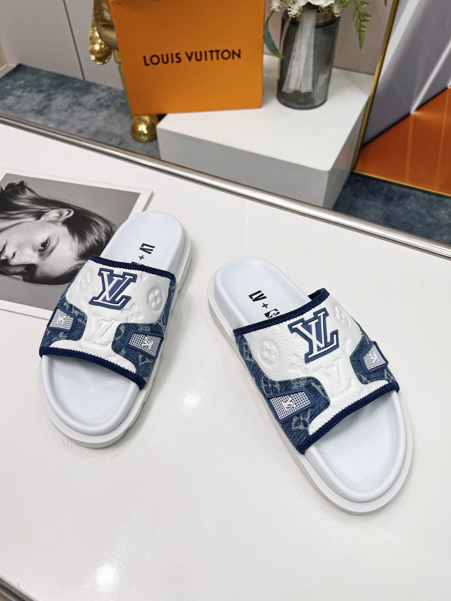 L0vis Vvtt0n Women’s Pool Pillow Flatform Comfort Sandal Blue For Women LV 1AACHL