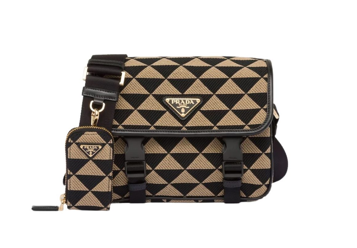 Pra*a Symbole Embroidered Fabric Bag In Beige For Women 8.6 in/ 22 cm 2VH069_2FKL_F0Y30_V_MOF