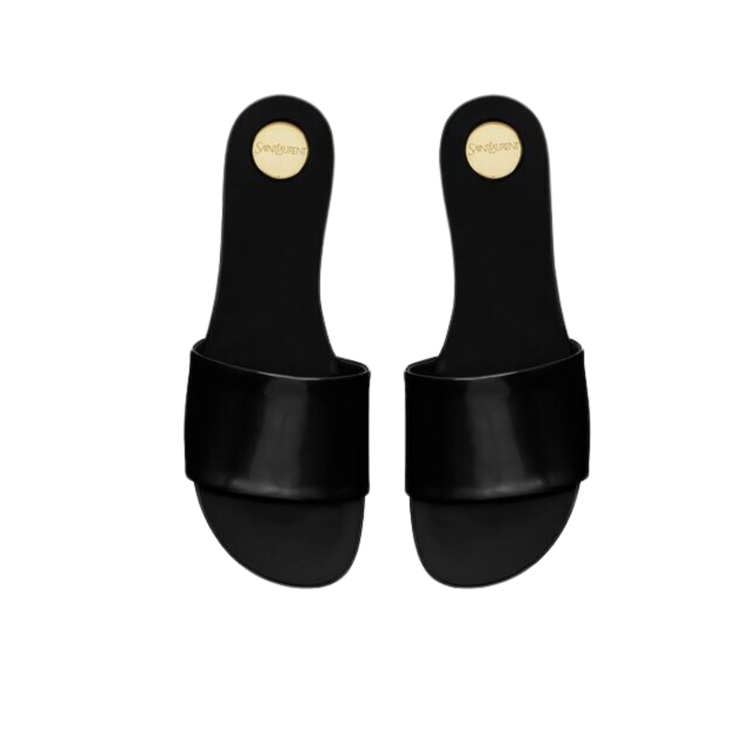 Sa1nt Lau*nt Carlyle Slides In Glazed Black For Women 783319AAAZY1000