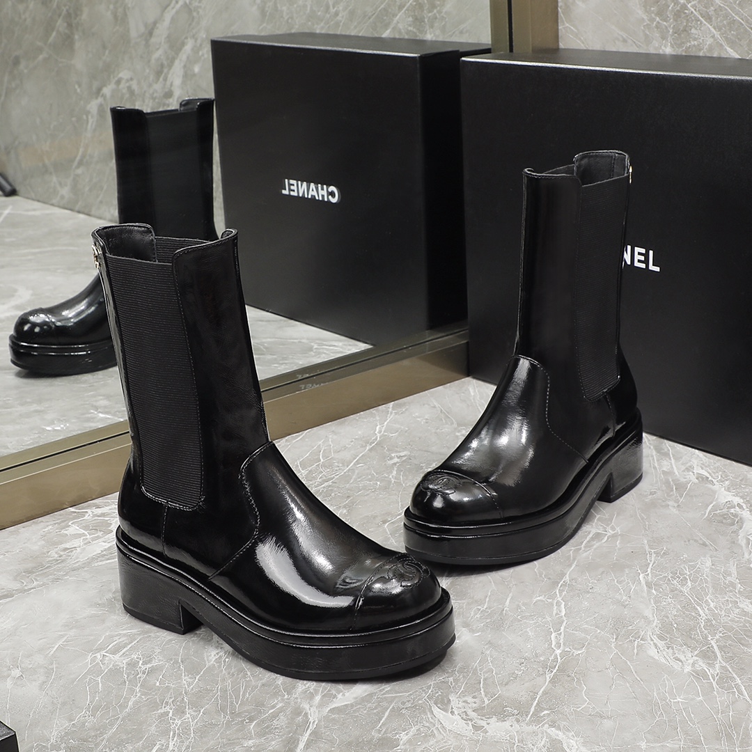 Ch**el Women’s Ankle Boots Bright Black For Women 1.6in/4cm
